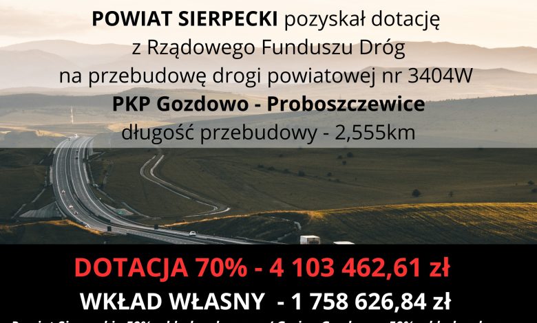Powiat sierpecki otrzymał dofinansowanie na przebudowę drogi powiatowej na odcinku Gozdowo-Proboszczewice.